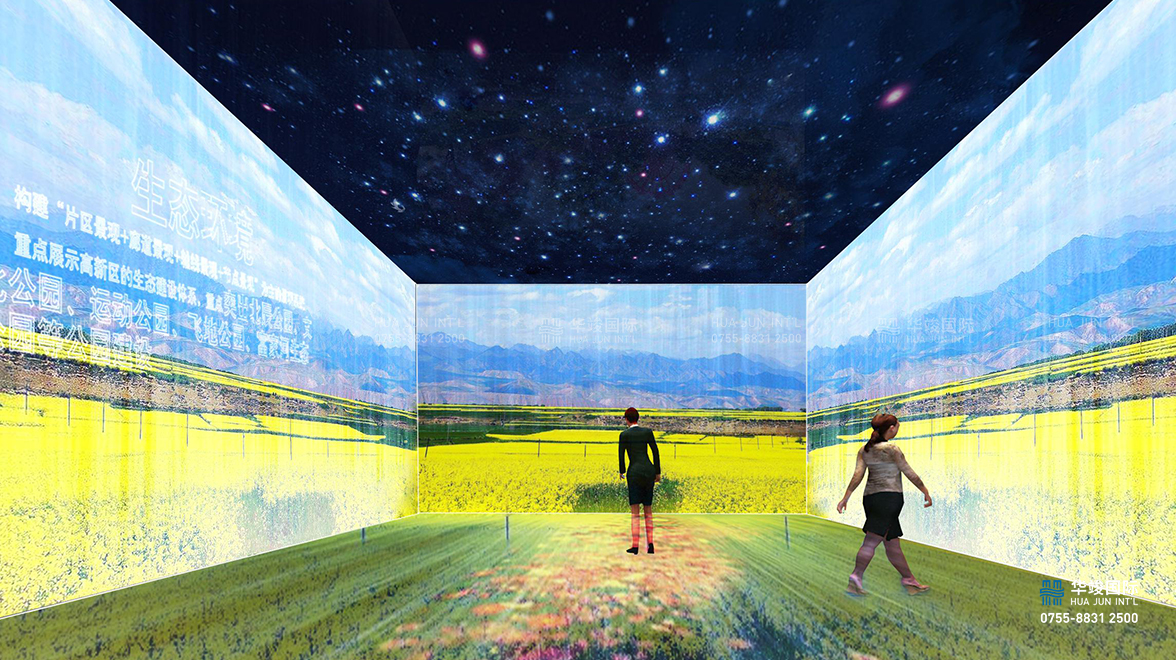 新安康門戶園區規劃館設計項目由華竣數創執行整體設計施工,華竣數創規劃館設計部以“智慧城市展廳”為起點;結合數字沙盤、數字影院、虛擬現實、互動多媒體等技術,打造承載城市歷史、展現城市現在、展望城市未來的智慧規劃館。