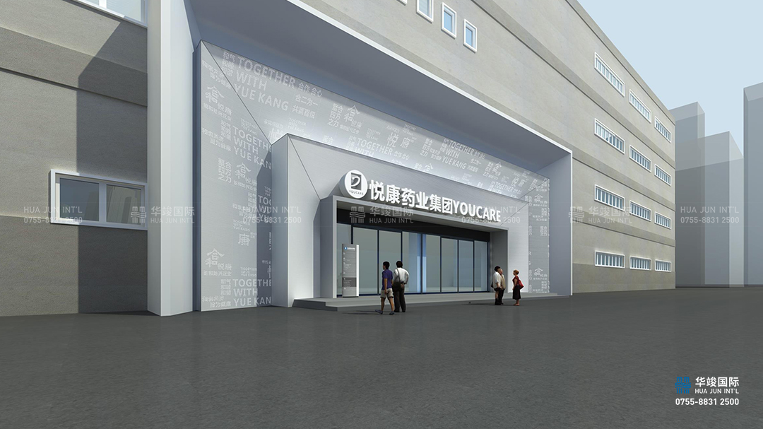 用流線型設計美化立柱,塑造成“悅康常青之樹”,樹干上投射出悅康的重點產品名稱,寓意悅康之樹不斷茁壯成長,開花結果,基業常青。