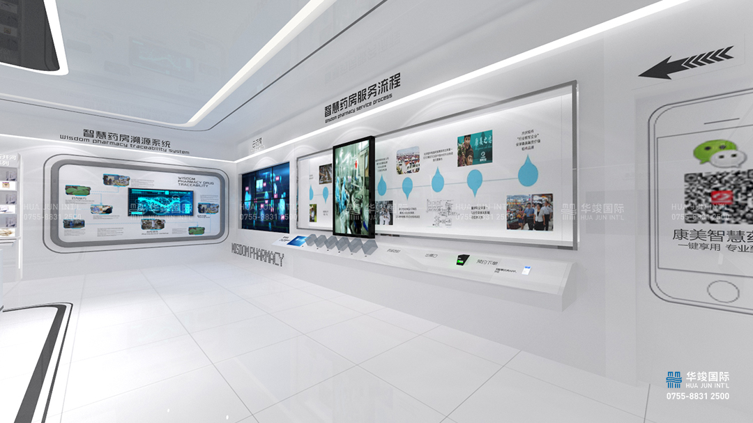 寶安康美智慧醫(yī)藥展館設(shè)計(jì)項(xiàng)目由華竣國(guó)際執(zhí)行整體設(shè)計(jì)施工,華竣數(shù)創(chuàng)擁有頂級(jí)展館設(shè)計(jì)團(tuán)隊(duì)和國(guó)際化的創(chuàng)新設(shè)計(jì)理念,融合互聯(lián)網(wǎng)+思維,順應(yīng)科技化趨勢(shì),打造全新智慧多媒體展廳。