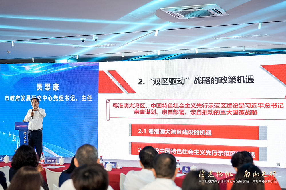 吳思康主任在演講中指出,南山區(qū)政府積極推動經(jīng)濟高質量發(fā)展,緊抓粵港澳大灣區(qū)、建設先行示范區(qū)“雙區(qū)驅動”戰(zhàn)略機會,竭力營造穩(wěn)定公平透明、可預期的國際一流法治化營商環(huán)境,彰顯了為深圳建設中國特色社會主義先行示范區(qū)貢獻南山力量的信心、努力和決心。