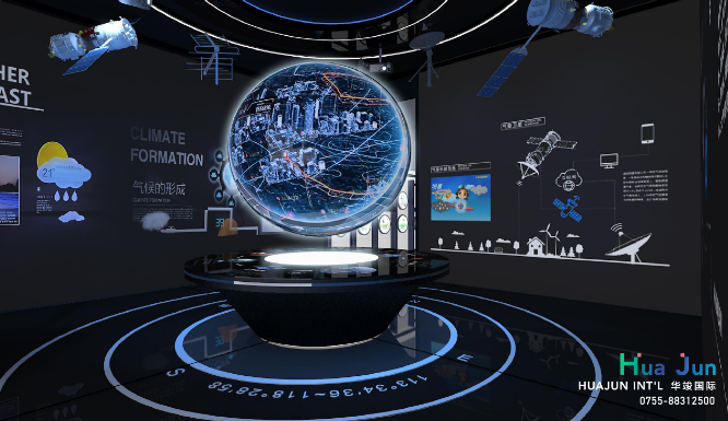 數(shù)字技術(shù): 氣象數(shù)字沙盤(pán) 、 投影L幕 、 虛擬現(xiàn)實(shí) 、 互動(dòng)裝置等